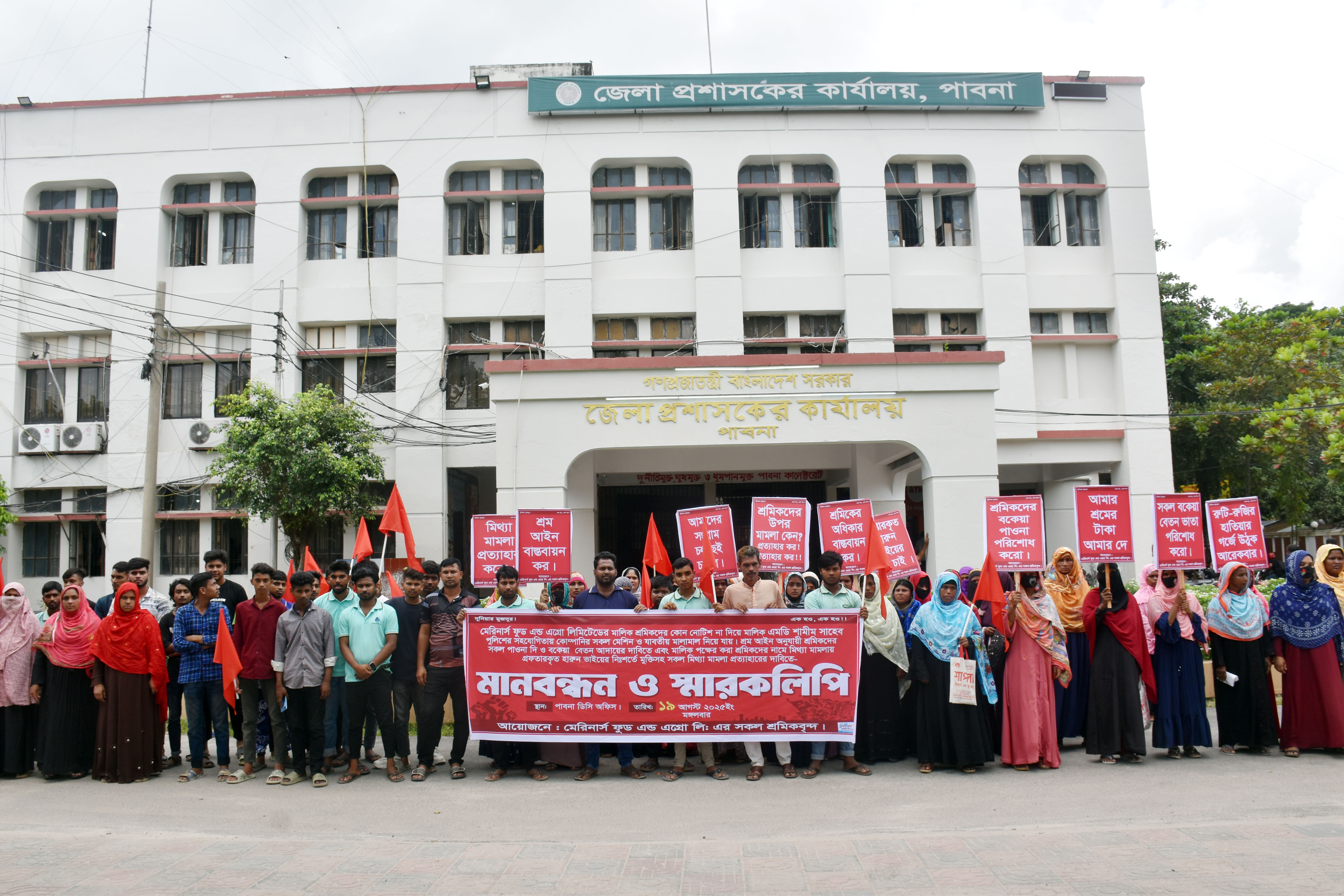পাবনা প্রতিনিধি: পাবনায় শ্রমিকদের বকেয়া বেতন পরিশোধ ও মিথ্যা মামলা প্রত্যাহরের দাবিতে মানববন্ধন করেছে মেরিনার্স ফুড এন্ড এগ্রো লিমিটেডের শ্রমিকবৃন্দ। মঙ্গলবার বেলা ১১টায় জেলা প্রশাসক কার্যালয়ের সামনে বিক্ষোভ মিছিল ও মানববন্ধন অনুষ্ঠিত হয়।